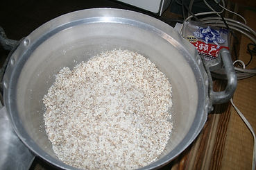 その後茹でた豆をよく冷まして混ぜ合わせます